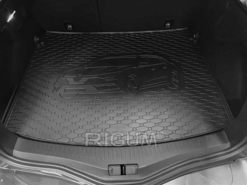 Gumový koberec do kufru neboli gumová vana do zavazadlového prostoru vozu Renault Megane Grandtour, od roku výroby 2016 ->, horní poloha v černém protiskluzovém provedení do České firmy Rigum s.r.o., která přesně kopíruje kufr Vašeho vozu.