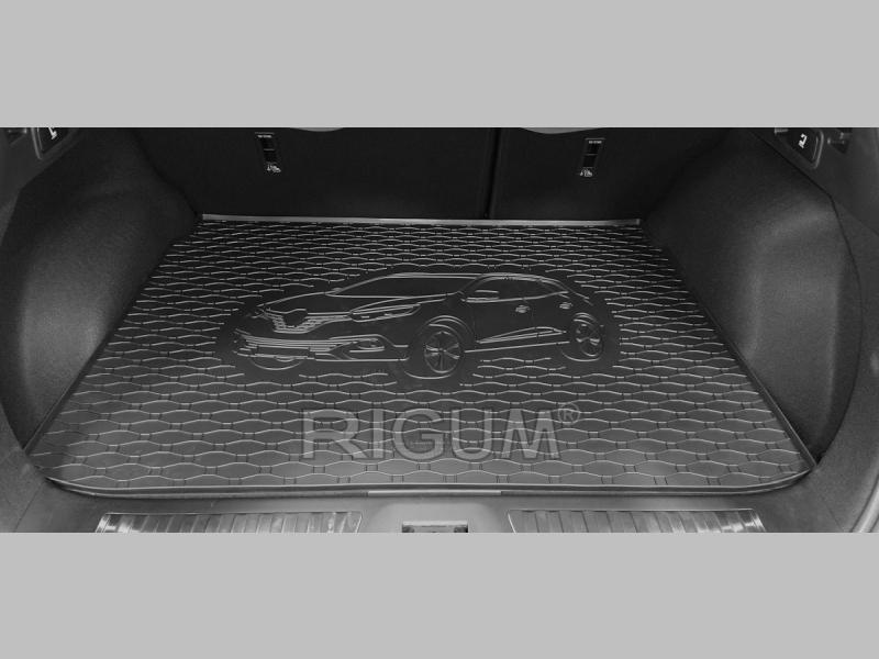 Gumový koberec do kufru neboli gumová vana do zavazadlového prostoru vozu Renault Kadjar, od roku výroby 2015 ->, horní poloha kufru v černém protiskluzovém provedení do České firmy Rigum s.r.o., která přesně kopíruje kufr Vašeho vozu.