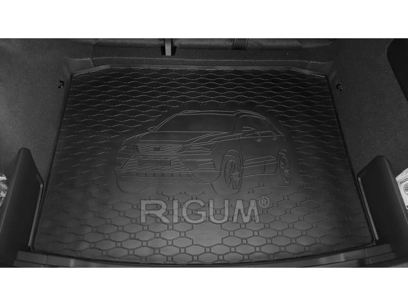 Gumový koberec do kufru neboli gumová vana do zavazadlového prostoru vozu Škoda Karoq, SUV, od roku výroby 2016 ->, provedení 4 x 2 bez mezipodlahy v černém protiskluzovém provedení do České firmy Rigum s.r.o., která přesně kopíruje kufr Vašeho vozu.