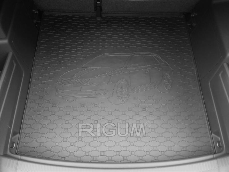 Gumový koberec do kufru neboli gumová vana do zavazadlového prostoru vozu Škoda Fabia III, combi, od roku výroby 2014 ->, provedení pro dolní kufr v černém protiskluzovém provedení do České firmy Rigum s.r.o., která přesně kopíruje kufr Vašeho vozu.