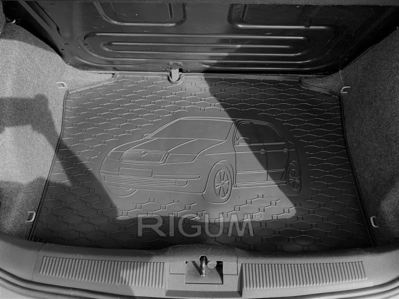 Gumový koberec do kufru neboli gumová vana do zavazadlového prostoru vozu Škoda Fabia I, hatchback, od roku výroby 2000->, v černém protiskluzovém provedení do České firmy Rigum s.r.o., která přesně kopíruje kufr Vašeho vozu.