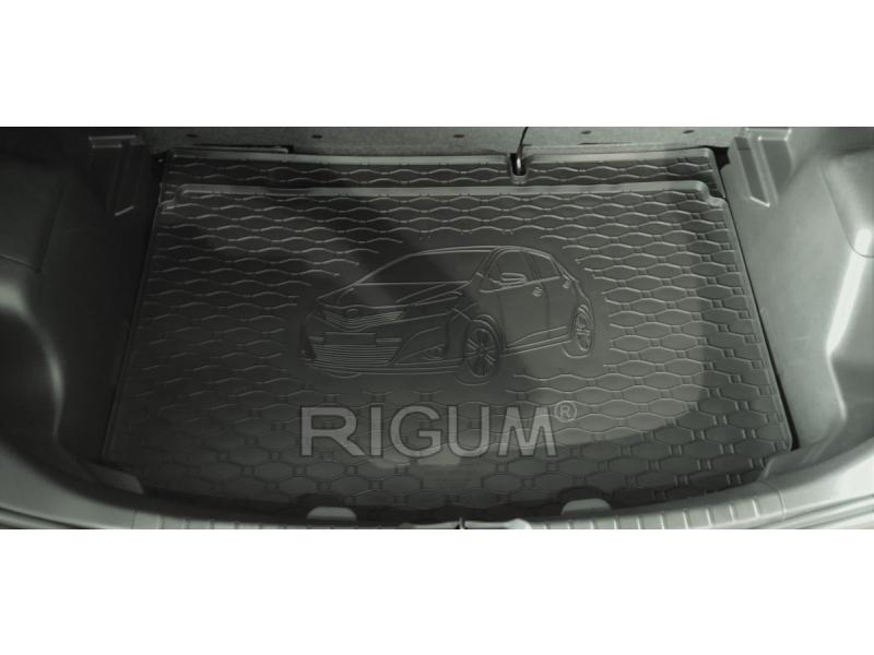 Gumový koberec do kufru (gumová vana do zavazadlového prostoru) vozu Toyota Yaris, provedení pro horní polohu, od roku výroby 2012 ->, v černém protiskluzovém provedení do českého výrobce Rigum s.r.o., který přesně kopíruje kufr Vašeho vozu.