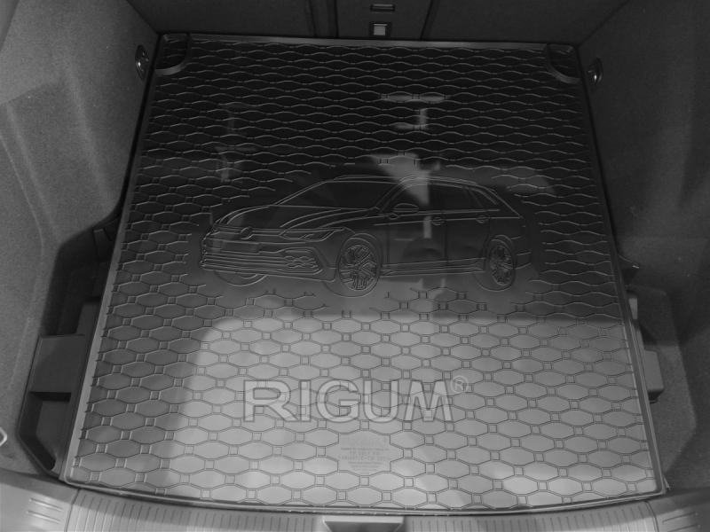 Gumový koberec do kufru (gumová vana do zavazadlového prostoru) vozu Volkswagen Golf VIII variant, provrdení pro horní i dolní kufr, od roku výroby 2021 ->, v černém protiskluzovém provedení do českého výrobce Rigum s.r.o., který přesně kopíruje kufr Vašeho vozu.