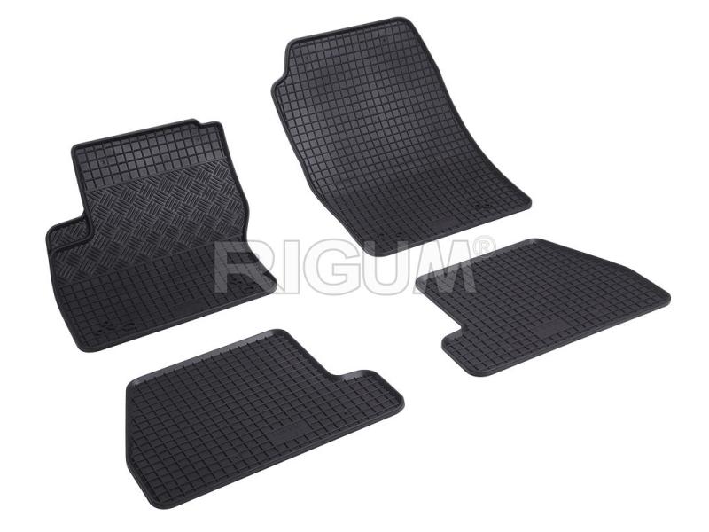 Gumové koberce do vnitřního prostoru vozu Ford Focus, od roku výroby 2011 ->, sada obsahuje čtyři kusy koberců, dva kusy přední a dva kusy zadní v černém protiskluzovém provedení do České firmy Rigum s.r.o., která přesně kopíruje prostor Vašeho vozu.