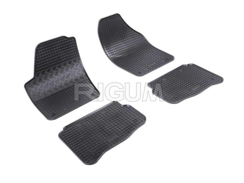 Gumové koberce do vnitřního prostoru vozu Škoda Fabia I, 5 míst, od roku výroby 2000 ->, sada obsahuje čtyři kusy koberců, dva kusy přední a dva kusy zadní v černém protiskluzovém provedení do České firmy Rigum s.r.o., která přesně kopíruje prostor Vašeho vozu.