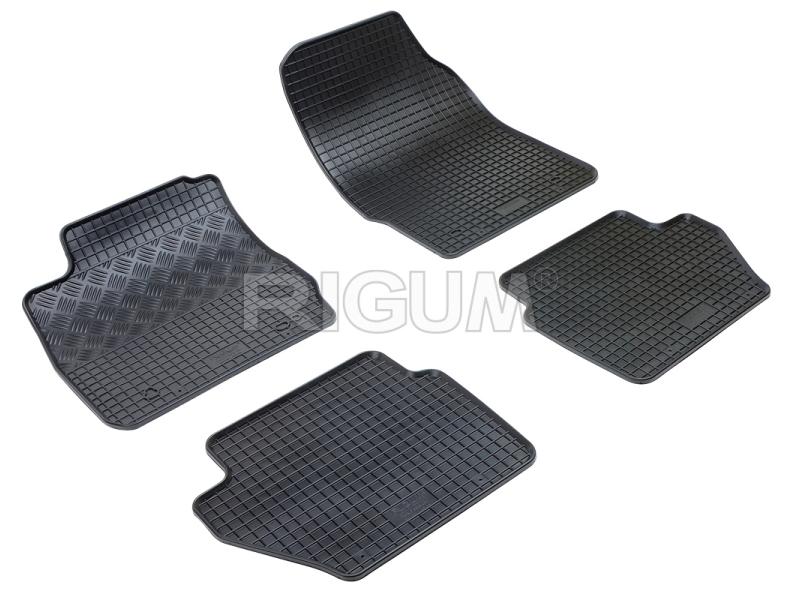 Gumové koberce do vnitřního prostoru vozu Ford Fiesta, od roku výroby 2008 ->, sada obsahuje čtyři kusy koberců, dva kusy přední a dva kusy zadní v černém protiskluzovém provedení do České firmy Rigum s.r.o., která přesně kopíruje prostor Vašeho vozu.
