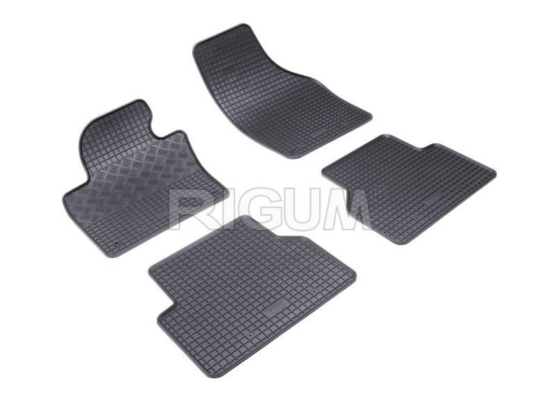 Gumové přesné podlahové koberce pod nohy pasažérů, které jsou svým tvarem přizpůsobeny do interiéru vozu Volkswagen Tiguan, od roku výroby 2008 ->, od české firmy Rigum které zabraňují namočení koberců interiéru od mokrých bot nebo bot od sněhu a jsou vyrobené z kvalitní gumové směsi.