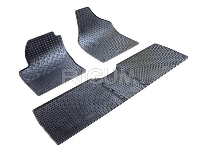 Gumové přesné podlahové koberce pod nohy pasažérů, které jsou svým tvarem přizpůsobeny do interiéru vozu Volkswagen Transporter T5 Multivan, od roku výroby 2003 ->,…