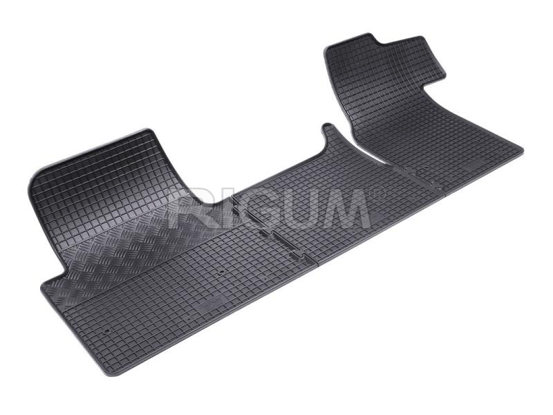 Gumové koberce do vnitřního prostoru vozu Opel Movano 3 přední místa, od roku výroby 2011 ->, sada obsahuje tři kusy předních koberců v černém protiskluzovém provedení do České firmy Rigum s.r.o., která přesně kopíruje prostor Vašeho vozu.