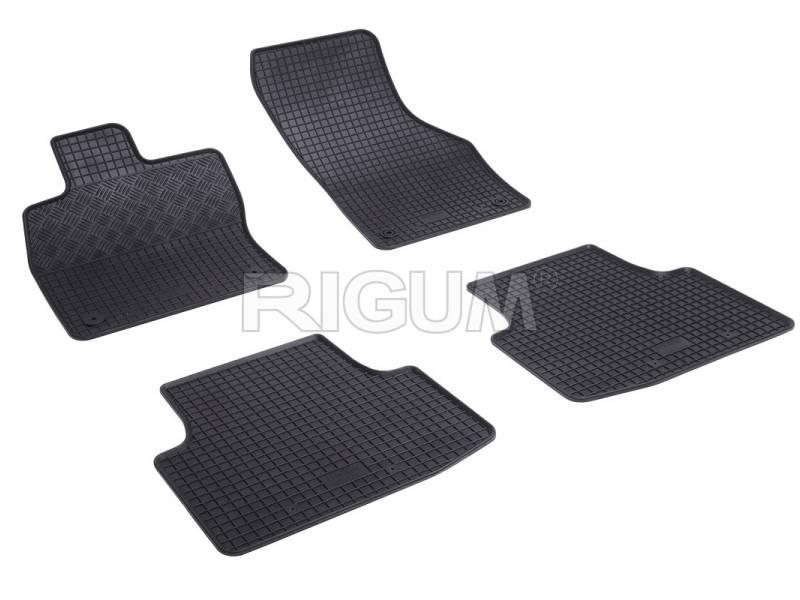 Gumové přesné podlahové koberce pod nohy pasažérů, které jsou svým tvarem přizpůsobeny do interiéru vozu Volkswagen Passat B8, od roku výroby 2014 ->, od české firmy Rigum které zabraňují namočení koberců interiéru od mokrých bot nebo bot od sněhu a jsou vyrobené z kvalitní gumové směsi.