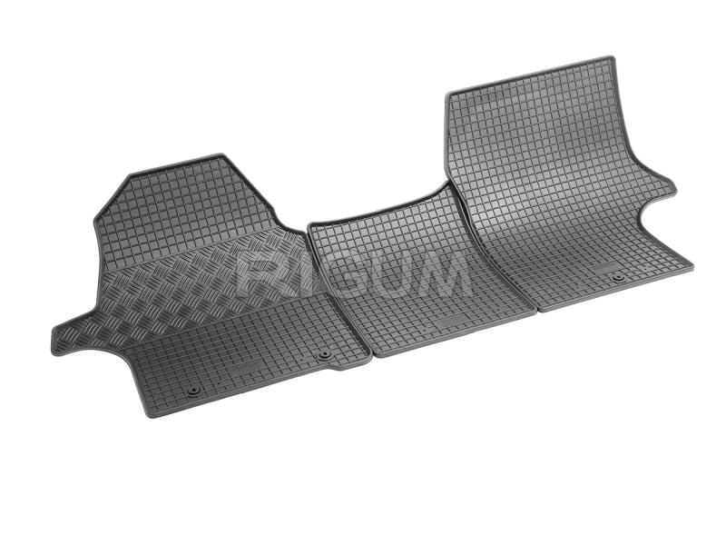Gumové koberce do vnitřního prostoru vozu Hyundai H350 1.řada sedadel, od roku výroby 2015 ->, sada obsahuje tři kusy předních koberců v černém protiskluzovém provedení do České firmy Rigum s.r.o., která přesně kopíruje prostor Vašeho vozu.