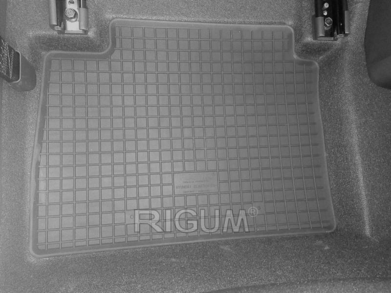 Gumové koberce do vnitřního prostoru vozu Hyundai Elantra, od roku výroby 2016 ->, sada obsahuje čtyři kusy koberců, dva kusy přední a dva kusy zadní v černém protiskluzovém provedení do České firmy Rigum s.r.o., která přesně kopíruje prostor Vašeho vozu.