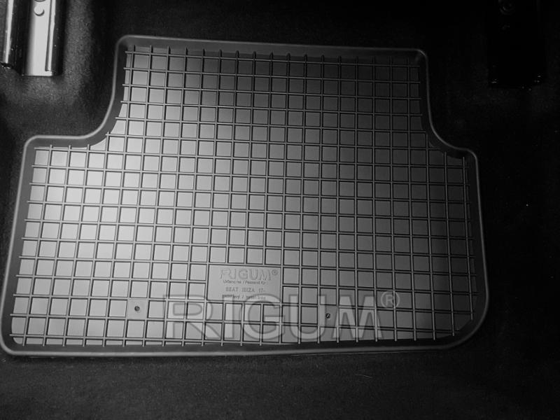 Gumové koberce do vnitřního prostoru vozu Seat Ibiza, od roku výroby 2017 ->, sada obsahuje čtyři kusy koberců, dva kusy přední a dva kusy zadní v černém protiskluzovém provedení do České firmy Rigum s.r.o., která přesně kopíruje prostor Vašeho vozu.