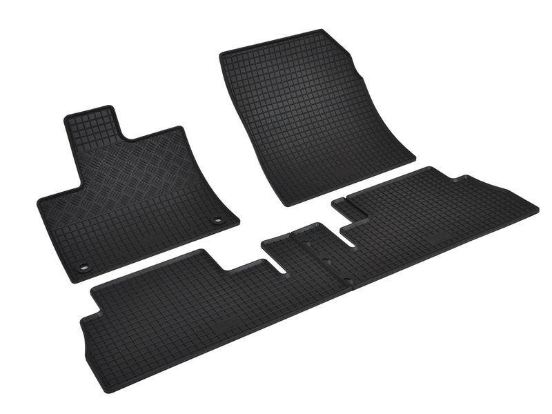 Gumové koberce do vnitřního prostoru vozu Peugeot e-Traveller Lux s tunelem, od roku výroby 2016 ->, sada obsahuje čtyři kusy předních koberců v černém protiskluzovém…