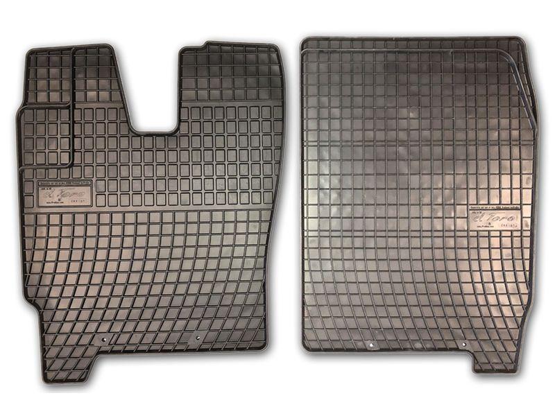 Gumové koberce do vnitřního prostoru vozu IVECO Eurocargo, od roku výroby 2023 ->, sada obsahuje dva kusy koberců pro 2 místa v černém protiskluzovém provedení do…