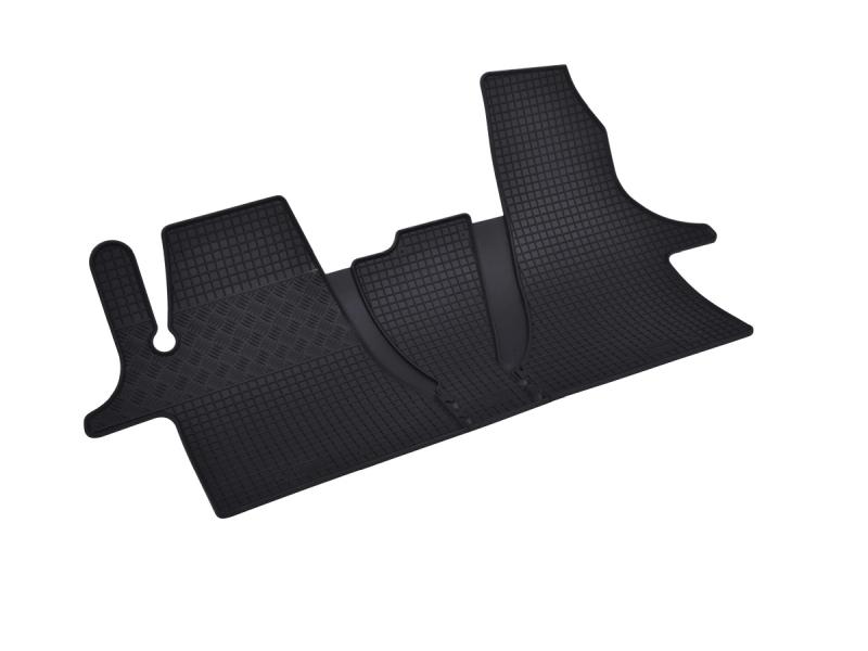 Gumové přesné podlahové koberce pod nohy pasažérů, které jsou svým tvarem přizpůsobeny do interiéru vozu Volkswagen Crafter, od roku výroby 2006 ->, od české firmy…