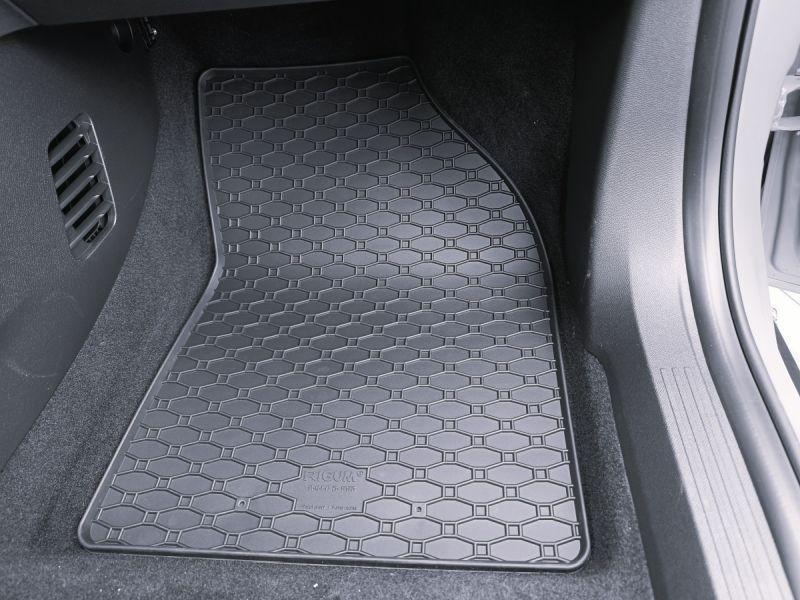 Gumové přesné podlahové koberce pod nohy pasažérů, které jsou svým tvarem přizpůsobeny do interiéru vozu Opel Frontera electric, od roku výroby 2025 ->, od české firmy Rigum které zabraňují namočení koberců interiéru od mokrých bot nebo bot od sněhu a jsou vyrobené z kvalitní gumové směsi.