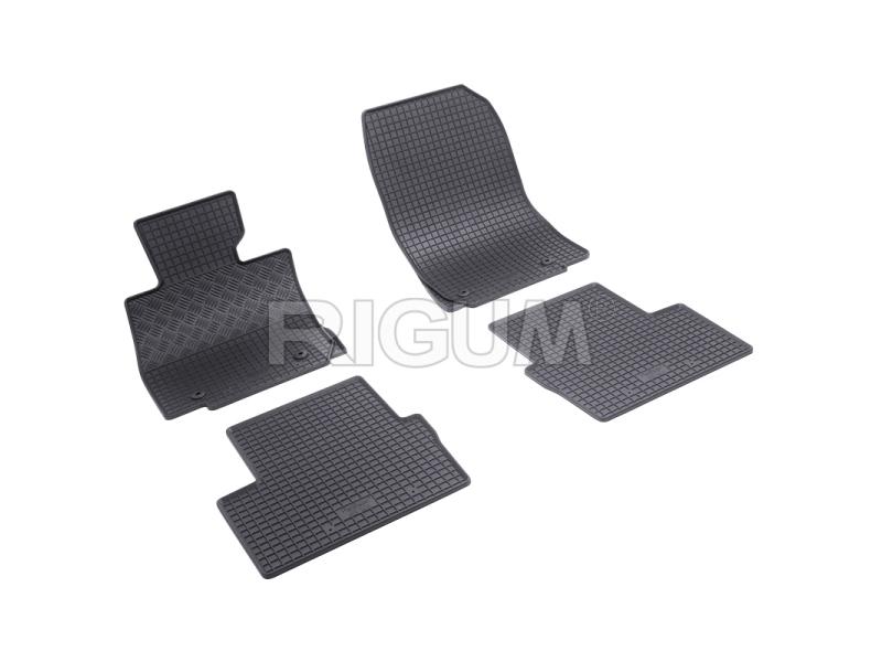 Gumové koberce do vnitřního prostoru vozu Mazda CX-3, od roku výroby 2015 ->, sada obsahuje čtyři kusy koberců, dva kusy přední a dva kusy zadní v černém protiskluzovém provedení do České firmy Rigum s.r.o., která přesně kopíruje prostor Vašeho vozu.