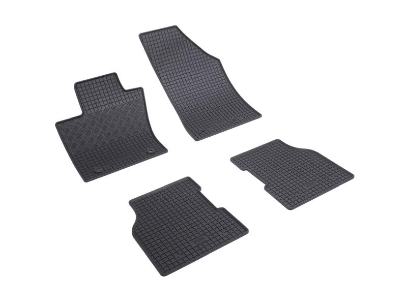 Gumové koberce do vnitřního prostoru vozu Jeep Renegade MHEV, od roku výroby 2021 ->, sada obsahuje čtyři kusy koberců, dva kusy přední a dva kusy zadní v černém protiskluzovém provedení do České firmy Rigum s.r.o., která přesně kopíruje prostor Vašeho vozu.