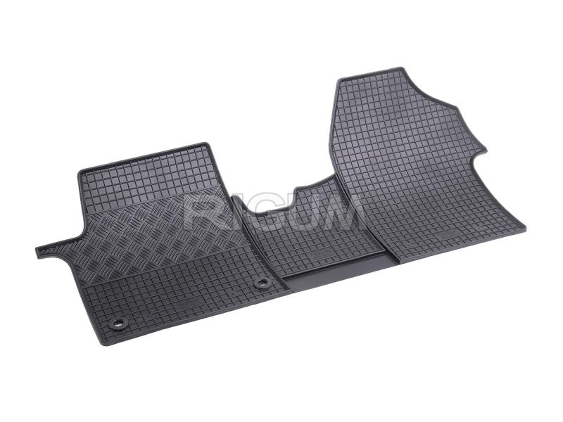 Gumové koberce do vnitřního prostoru vozu Peugeot Expert, od roku výroby 2016 ->, sada obsahuje tři kusy předních koberců v černém protiskluzovém provedení do České firmy Rigum s.r.o., která přesně kopíruje prostor Vašeho vozu.