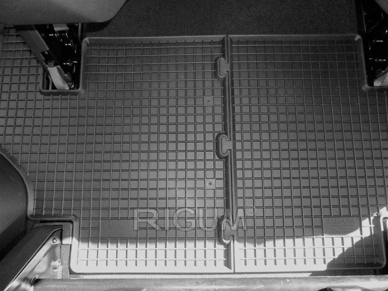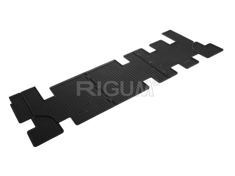 Gumové koberce do vnitřního prostoru vozu Ford Tourneo Custom 3.řada sedadel, od roku výroby 2012 ->, sada obsahuje tři kusy koberců třetí řady sedadel v černém protiskluzovém provedení do České firmy Rigum s.r.o., která přesně kopíruje prostor Vašeho vozu.