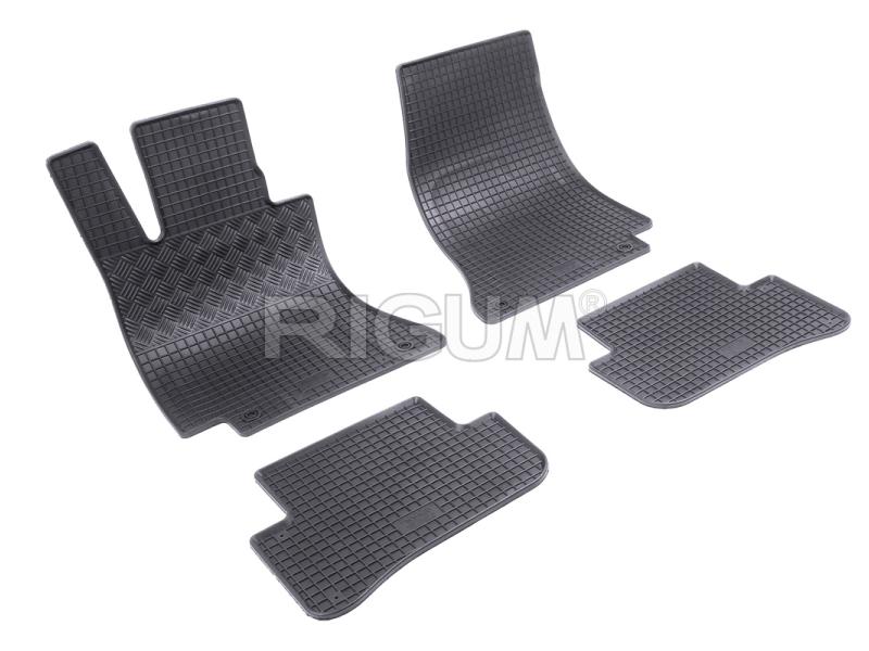 Gumové koberce do vnitřního prostoru vozu Mercedes C-Klasse W205, od roku výroby 2014 ->, sada obsahuje čtyři kusy koberců, dva kusy přední a dva kusy zadní v černém protiskluzovém provedení do České firmy Rigum s.r.o., která přesně kopíruje prostor Vašeho vozu.
