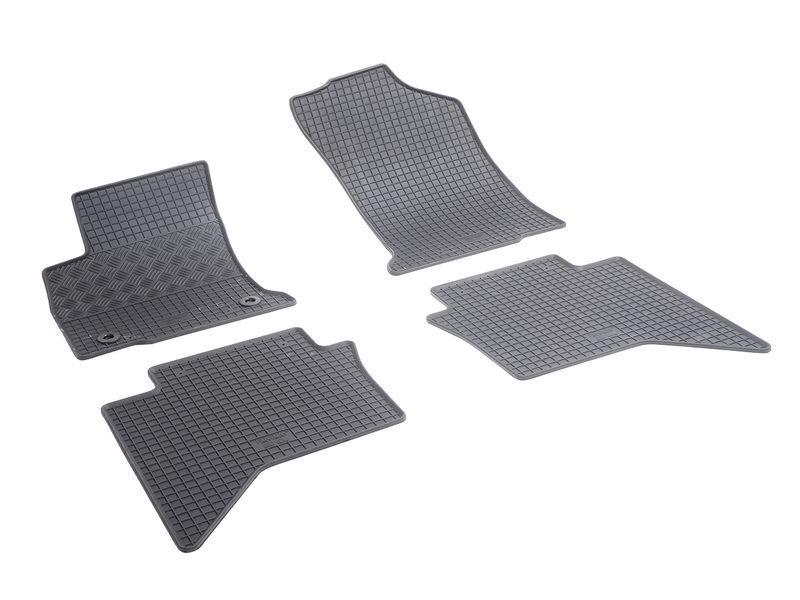 Gumové koberce do vnitřního prostoru vozu Toyota Hilux Double Cab MHEV, od roku výroby 2016 ->, sada obsahuje čtyři kusy koberců, dva kusy přední a dva kusy zadní v černém protiskluzovém provedení do České firmy Rigum s.r.o., která přesně kopíruje prostor Vašeho vozu.