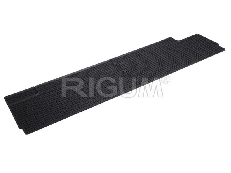 Gumové koberce do vnitřního prostoru vozu Renault Trafic, od roku výroby 2014 ->, sada obsahuje dva kusy koberců na třetí řadu sedadel zadní v černém protiskluzovém provedení do České firmy Rigum s.r.o., která přesně kopíruje prostor Vašeho vozu.