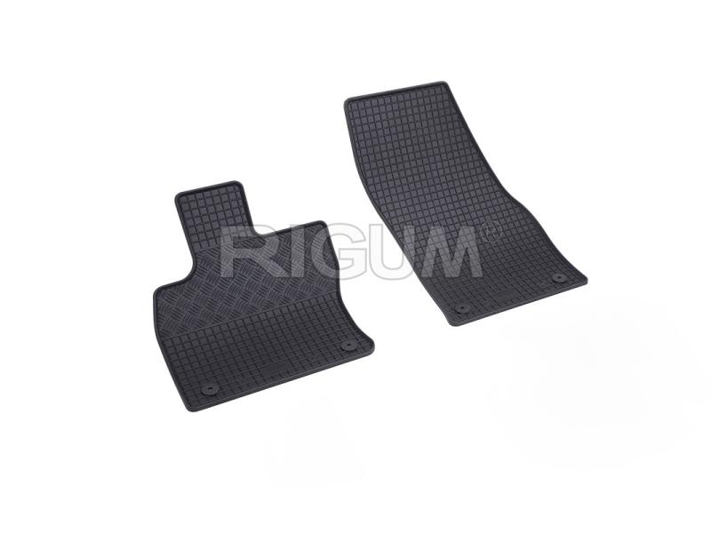 Gumové přesné podlahové koberce pod nohy pasažérů, které jsou svým tvarem přizpůsobeny do interiéru vozu Volkswagen Taigo, od roku výroby 2021 ->, od české firmy…