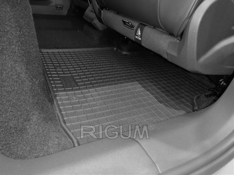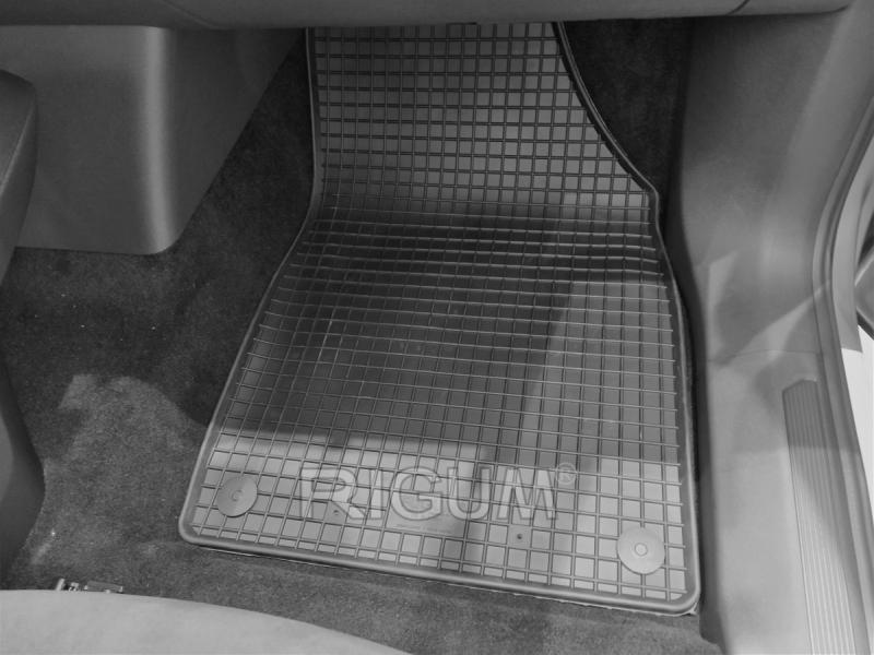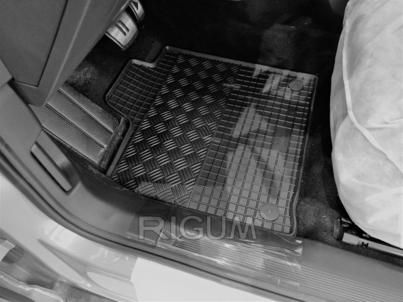 Gumové přesné podlahové koberce pod nohy pasažérů, které jsou svým tvarem přizpůsobeny do interiéru vozu Volkswagen ID.4, od roku výroby 2021 ->, od české firmy Rigum které zabraňují namočení koberců interiéru od mokrých bot nebo bot od sněhu a jsou vyrobené z kvalitní gumové směsi.