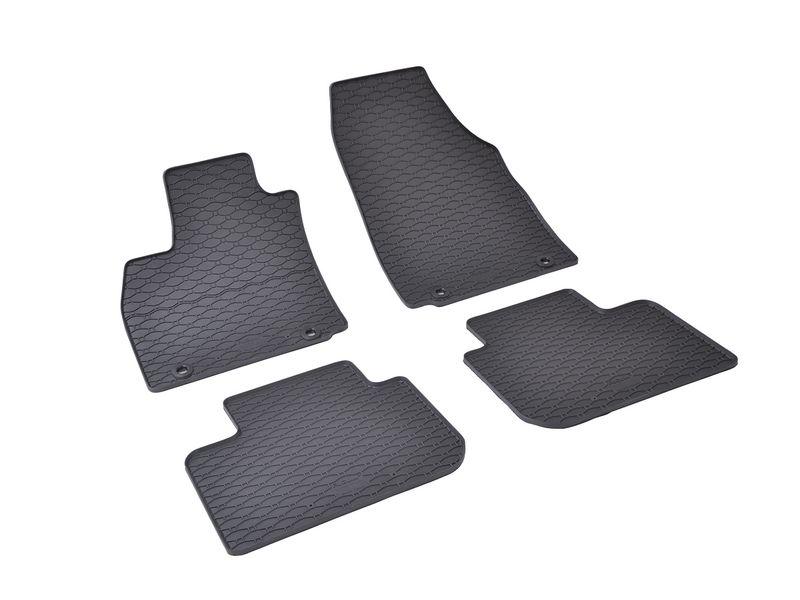 Gumové koberce do vnitřního prostoru vozu MG ZS, 5 míst, od roku výroby 2025 ->, sada obsahuje čtyři kusy předních i zadních koberců v černém protiskluzovém provedení do České firmy Rigum s.r.o., která přesně kopíruje prostor Vašeho vozu.