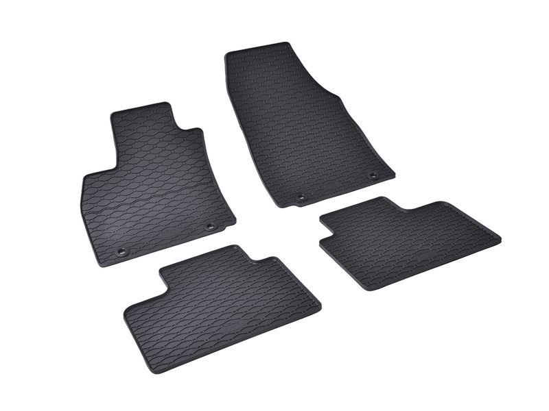 Gumové koberce do vnitřního prostoru vozu MG HS, 5 míst, od roku výroby 2024 ->, sada obsahuje čtyři kusy předních i zadních koberců v černém protiskluzovém…