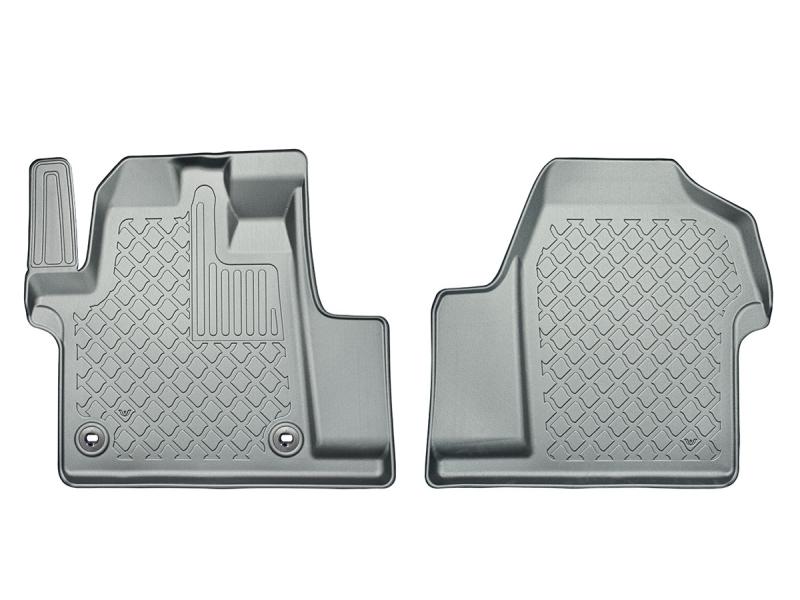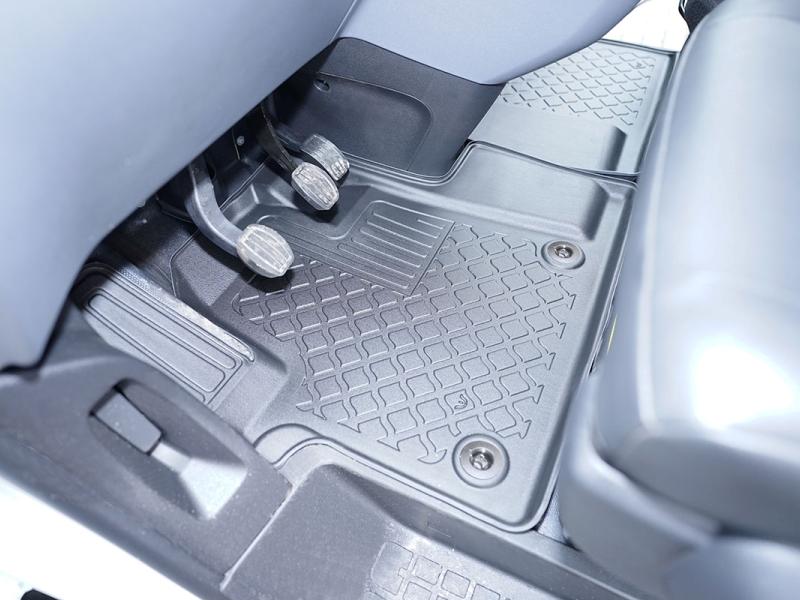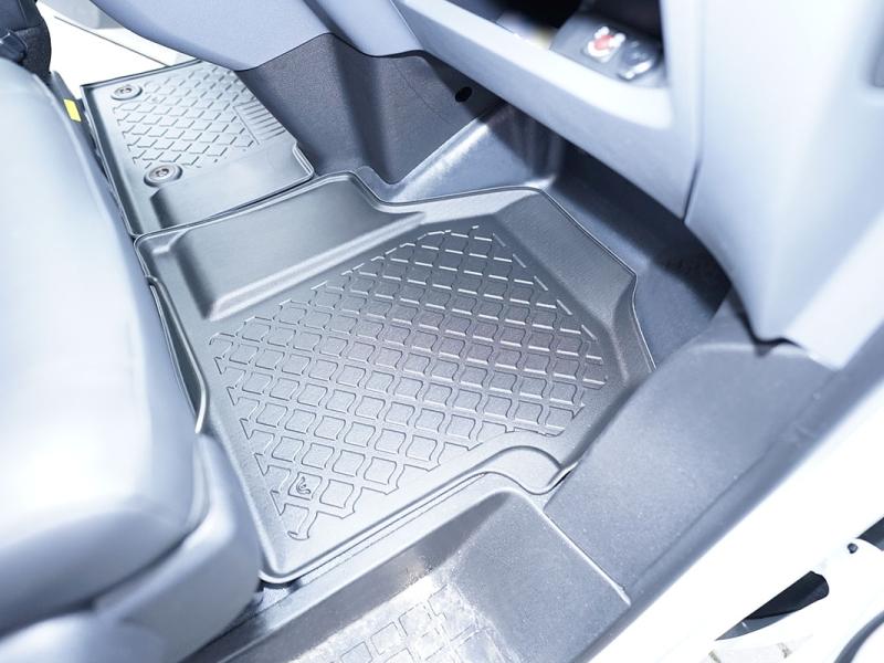 Gumoplastové 3D přesné podlahové koberce ve tvaru vaničky pod nohy pasažérů na vůz Toyota ProAce electric, pouze přední 2 i 3 místa, od roku výroby 04.2021 -> krátká i dlouhá verze , od polské firmy Aristar, které zabraňují namočení koberců interiéru od mokrých bot nebo bot od sněhu a jsou vyrobené ze stejného materiálu jako vany do kufru od stejnojmenné firmy.