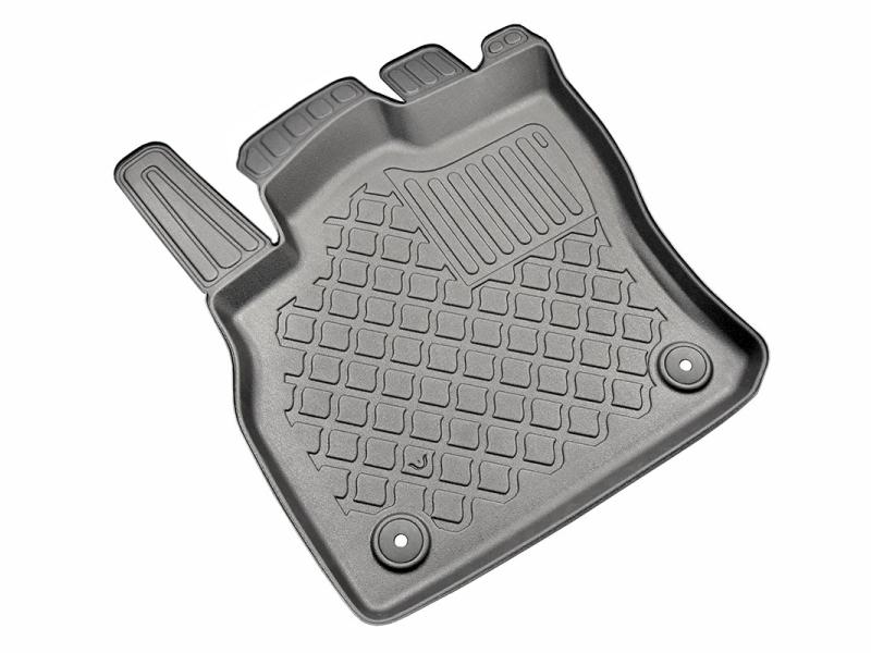 Gumoplastové 3D přesné podlahové koberce ve tvaru vaničky pod nohy pasažérů na vůz Audi Q3 (F3) TFSI e Plug-in Hybrid SUV, od roku výroby 01.2021 ->, 5 dveří, od polské firmy Aristar, které zabraňují namočení koberců interiéru od mokrých bot nebo bot od sněhu a jsou vyrobené ze stejného materiálu jako vany do kufru od stejnojmenné firmy.