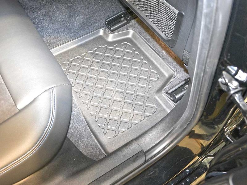 Gumoplastové 3D přesné podlahové koberce ve tvaru vaničky pod nohy pasažérů na vůz BMW 3 (G21) Plug-in Hxbrid Touring Combi 5 dveří od roku výroby 07.2020 ->, od polské firmy Aristar, které zabraňují namočení koberců interiéru od mokrých bot nebo bot od sněhu a jsou vyrobené ze stejného materiálu jako vany do kufru od stejnojmenné firmy.