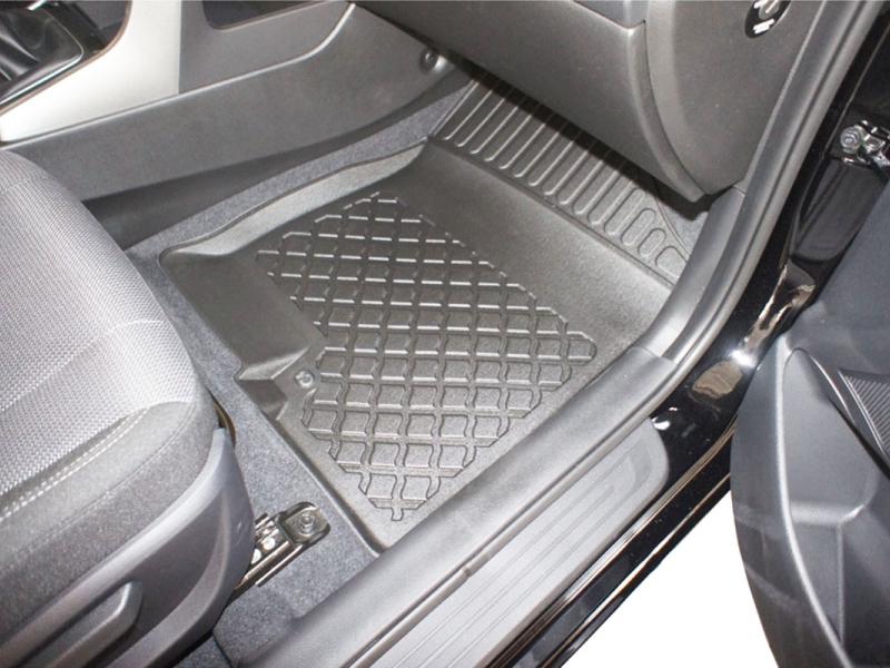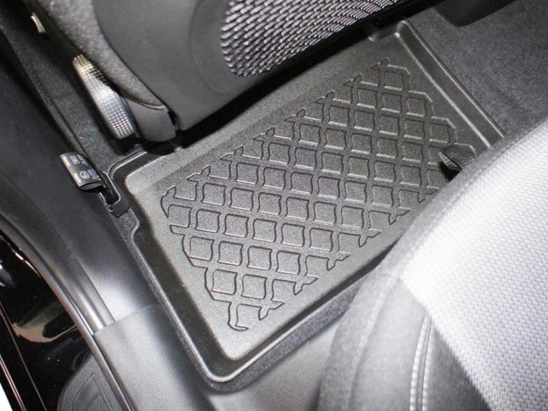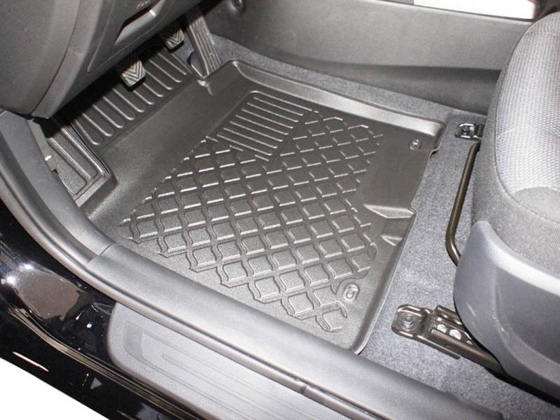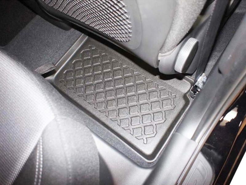 Gumoplastové 3D přesné podlahové koberce ve tvaru vaničky pod nohy pasažérů na vůz KIA Ceed II, SW combi, 5 dveří rok výroby 09.2012 - 08.2018, od polské firmy Aristar, které zabraňují namočení koberců interiéru od mokrých bot nebo bot od sněhu a jsou vyrobené ze stejného materiálu jako vany do kufru od stejnojmenné firmy.