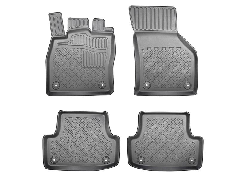 Gumoplastové 3D přesné podlahové koberce ve tvaru vaničky pod nohy pasažérů na vůz Audi A3 (8V), Limousine, rok výroby 09.2013 - 03.2020, od polské firmy Aristar, které zabraňují namočení koberců interiéru od mokrých bot nebo bot od sněhu a jsou vyrobené ze stejného materiálu jako vany do kufru od stejnojmenné firmy.
