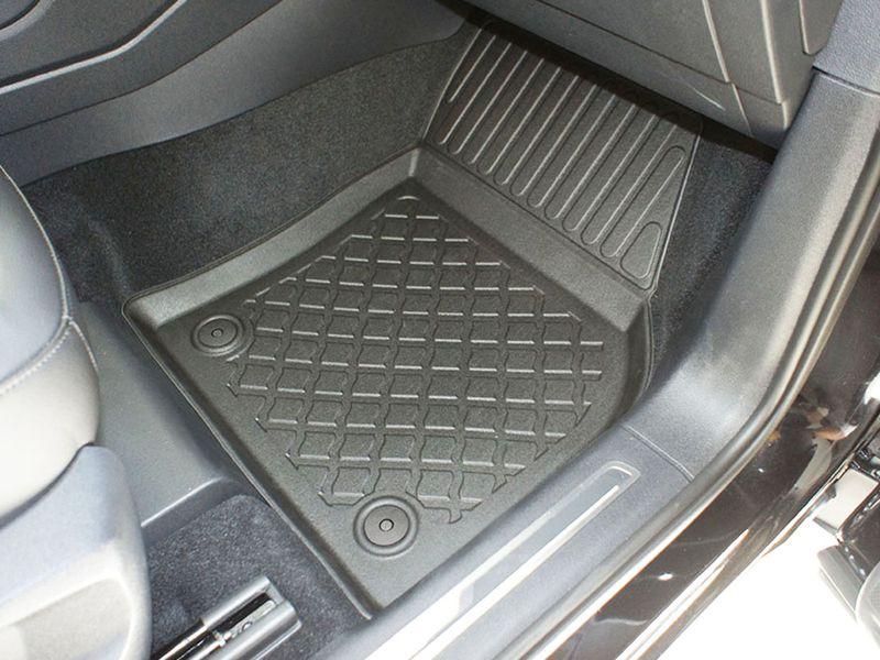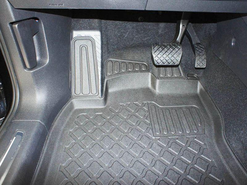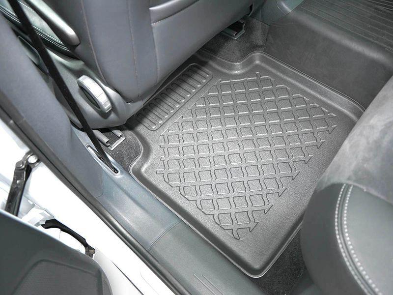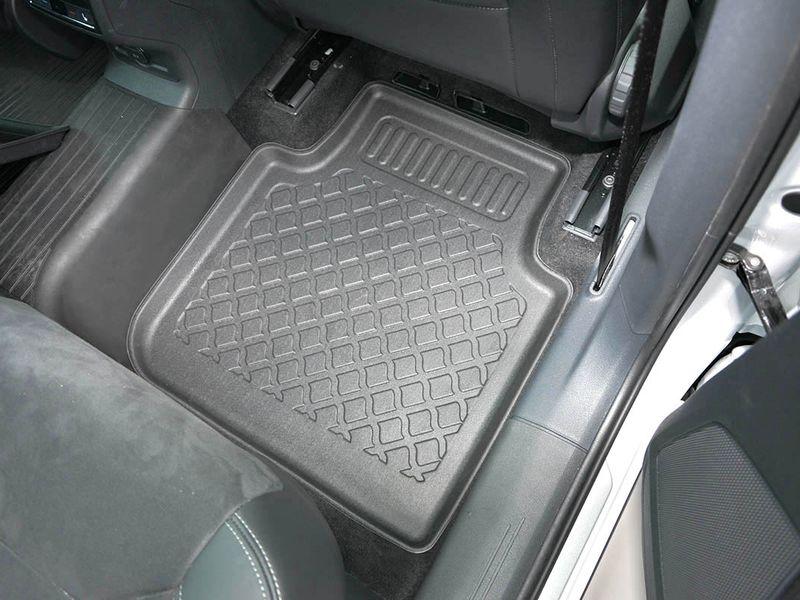 Gumoplastové 3D přesné podlahové koberce ve tvaru vaničky pod nohy pasažérů na vůz Seat 5 i 7 míst SUV 5 dveří, od roku výroby 10.2018 ->, bez tředí řady koberců od polské firmy Aristar, které zabraňují namočení koberců interiéru od mokrých bot nebo bot od sněhu a jsou vyrobené ze stejného materiálu jako vany do kufru od stejnojmenné firmy.