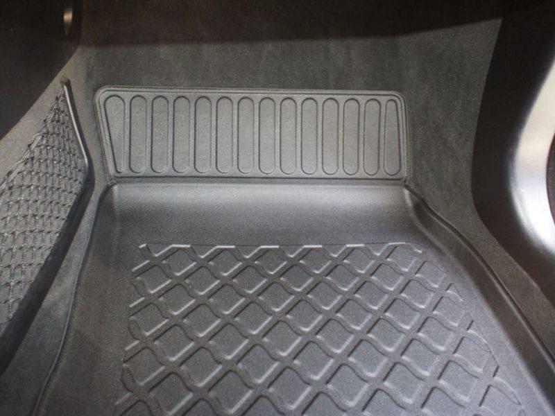 Gumoplastové 3D přesné podlahové koberce ve tvaru vaničky pod nohy pasažérů na vůz BMW 5 (E60) Limousine sedan 4 dveře, rok výroby 07.2003 - 02.2010, od polské firmy Aristar, které zabraňují namočení koberců interiéru od mokrých bot nebo bot od sněhu a jsou vyrobené ze stejného materiálu jako vany do kufru od stejnojmenné firmy.