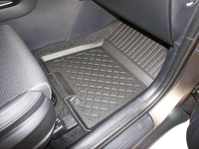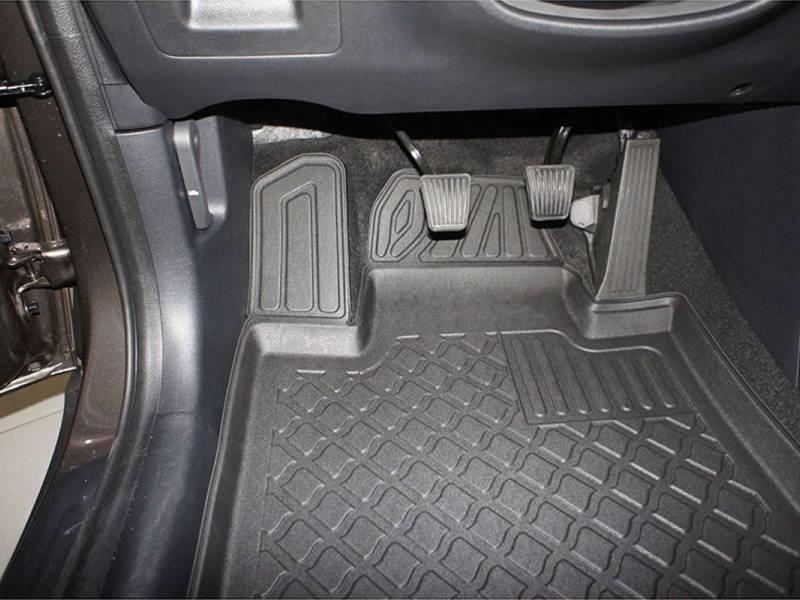 Gumoplastové 3D přesné podlahové koberce ve tvaru vaničky pod nohy pasažérů na vůz KIA Ceed II i KIA Pro Ceed, Hatchback, 3 i 5 dveří rok výroby 05.2012 - 05.2018, od polské firmy Aristar, které zabraňují namočení koberců interiéru od mokrých bot nebo bot od sněhu a jsou vyrobené ze stejného materiálu jako vany do kufru od stejnojmenné firmy.