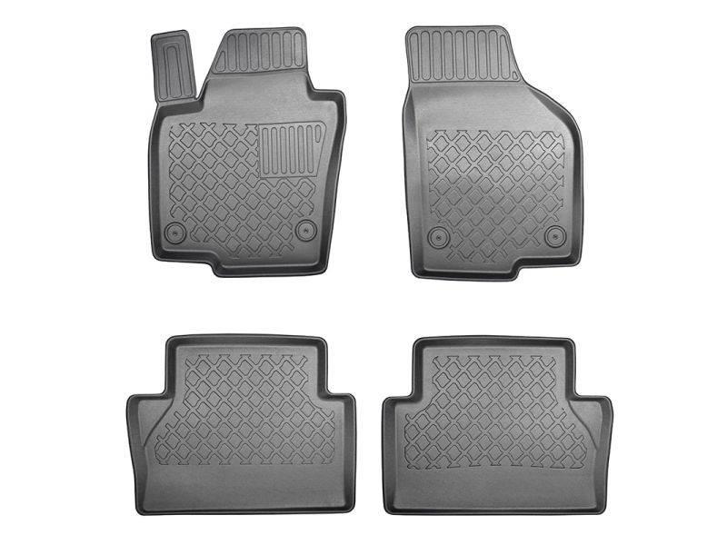Gumoplastové 3D přesné podlahové koberce ve tvaru vaničky pod nohy pasažérů na vůz Volkswagen Sharan II i Seat Alhambra II 5 i 7 míst Van 5 dveří, od roku výroby 09.2010 ->, od polské firmy Aristar, které zabraňují namočení koberců interiéru od mokrých bot nebo bot od sněhu a jsou vyrobené ze stejného materiálu jako vany do kufru od stejnojmenné firmy.