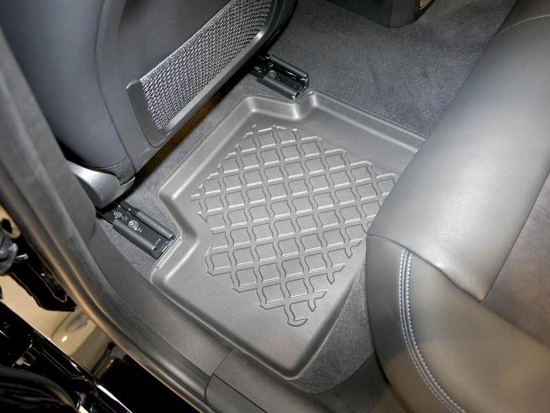Gumoplastové 3D přesné podlahové koberce ve tvaru vaničky pod nohy pasažérů na vůz BMW 3 (G21) Touring Combi i X-drive 5 dveří od roku výroby 06.2019 ->, od polské firmy Aristar, které zabraňují namočení koberců interiéru od mokrých bot nebo bot od sněhu a jsou vyrobené ze stejného materiálu jako vany do kufru od stejnojmenné firmy.