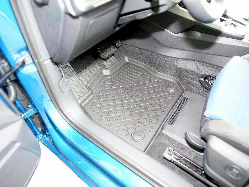 Gumoplastové 3D přesné podlahové koberce ve tvaru vaničky pod nohy pasažérů na vůz Audi A3 Sportback (8Y) Limousine, 4 dveře od roku výroby 04.2020 -> nejsou určeny pro Audi S3 a RS3, od polské firmy Aristar, které zabraňují namočení koberců interiéru od mokrých bot nebo bot od sněhu a jsou vyrobené ze stejného materiálu jako vany do kufru od stejnojmenné firmy.