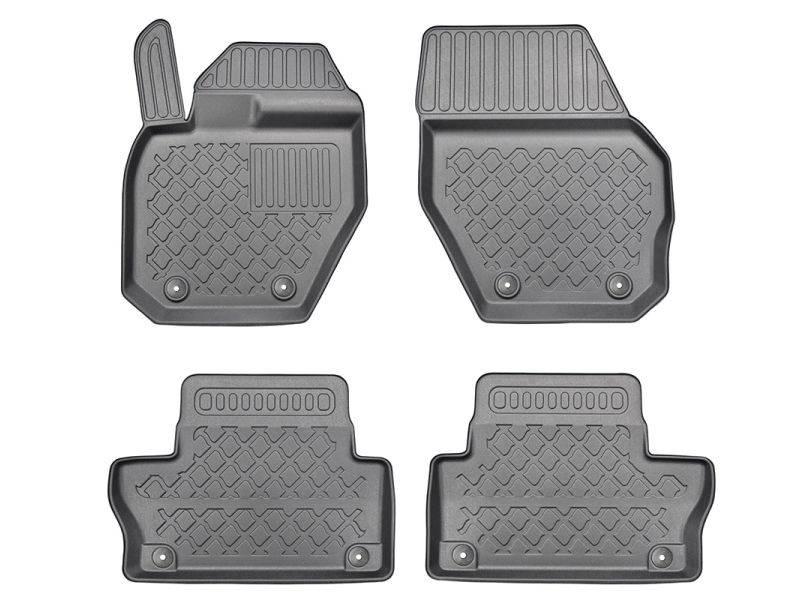 Gumoplastové 3D přesné podlahové koberce ve tvaru vaničky pod nohy pasažérů na vůz Volvo XC60 SUV 5 dveří, rok výroby 10.2008 - 2015, od polské firmy Aristar, které zabraňují namočení koberců interiéru od mokrých bot nebo bot od sněhu a jsou vyrobené ze stejného materiálu jako vany do kufru od stejnojmenné firmy.