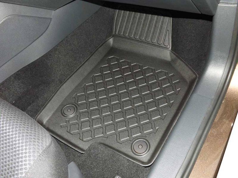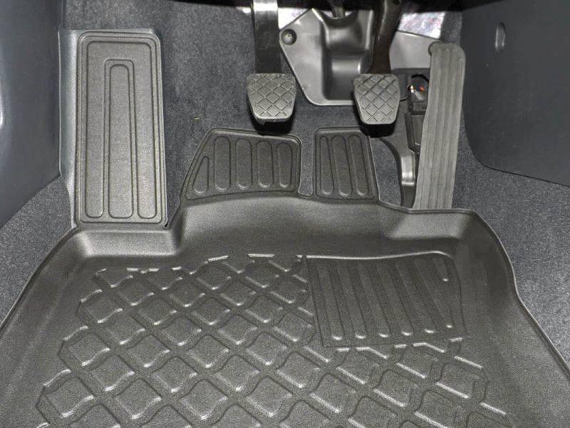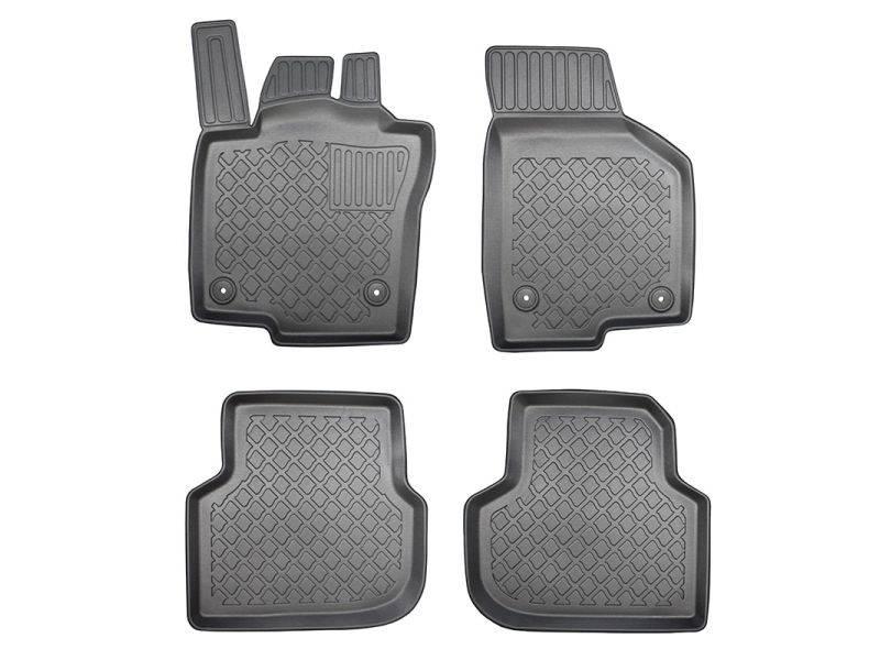 Gumoplastové 3D přesné podlahové koberce ve tvaru vaničky pod nohy pasažérů na vůz Volkswagen Jetta (NCS) Sedan 4 dveře, od roku výroby 01.2011 ->, od polské firmy Aristar, které zabraňují namočení koberců interiéru od mokrých bot nebo bot od sněhu a jsou vyrobené ze stejného materiálu jako vany do kufru od stejnojmenné firmy.