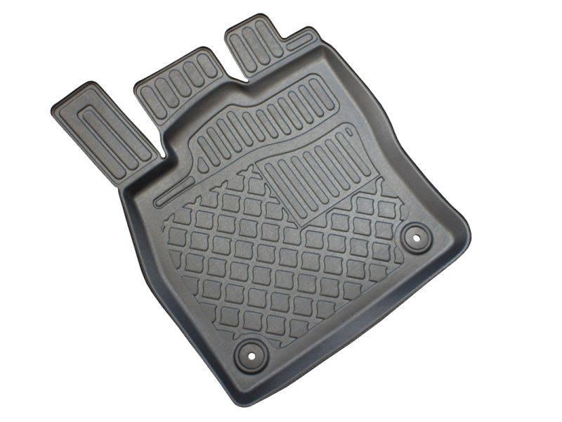 Gumoplastové 3D přesné podlahové koberce ve tvaru vaničky pod nohy pasažérů na vůz Audi A3 (8V) 3 dveře, SPORTBACK , rok výroby 08.2012 - 03.2020, od polské firmy Aristar, které zabraňují namočení koberců interiéru od mokrých bot nebo bot od sněhu a jsou vyrobené ze stejného materiálu jako vany do kufru od stejnojmenné firmy.