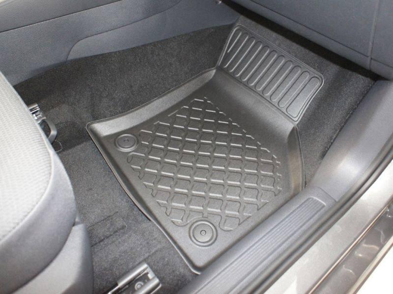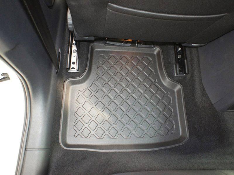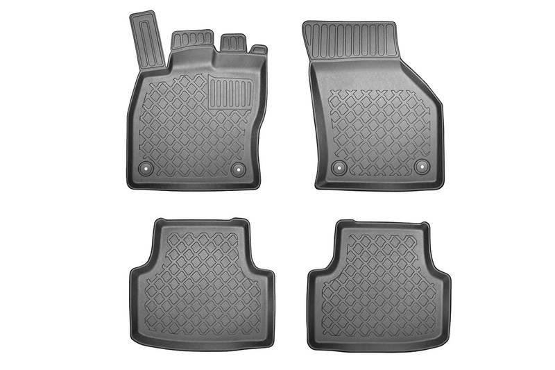 Gumoplastové 3D přesné podlahové koberce ve tvaru vaničky pod nohy pasažérů na vůz Škoda Octavia III Liftback i Combi 5 dveří, rok výroby 02.2013 - 05.2020, od polské firmy Aristar, které zabraňují namočení koberců interiéru od mokrých bot nebo bot od sněhu a jsou vyrobené ze stejného materiálu jako vany do kufru od stejnojmenné firmy.