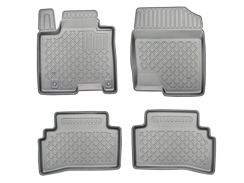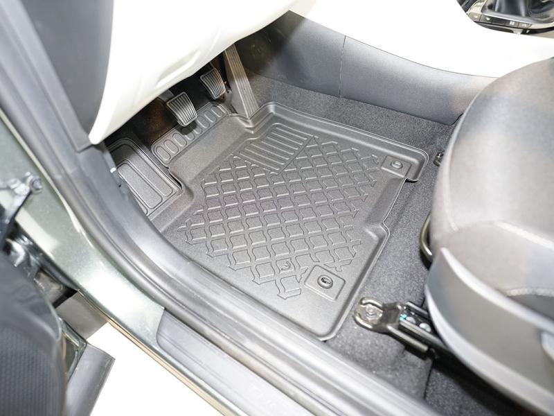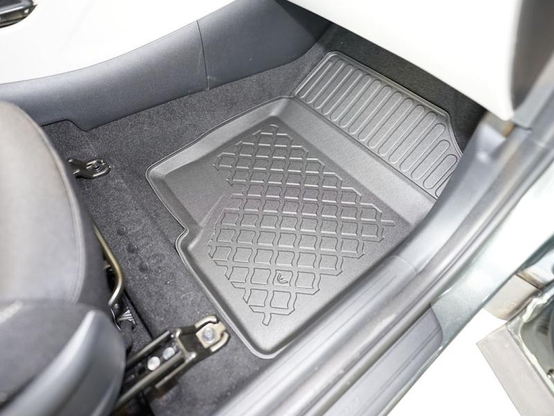 Gumoplastové 3D přesné podlahové koberce ve tvaru vaničky pod nohy pasažérů na vůz Hyundai Tucson III i Hyunday Tocson III 48V-Hybrid, SUV, 5 dveří, od roku výroby 12.2020 ->, koberce nejsou určeny pro HEV Hybrid, od polské firmy Aristar, které zabraňují namočení koberců interiéru od mokrých bot nebo bot od sněhu a jsou vyrobené ze stejného materiálu jako vany do kufru od stejnojmenné firmy.