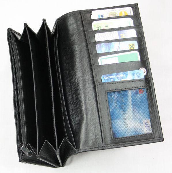 dámská psaníčková kožená peněženka s klopnou Kód zboží: 511-7233-47 Popis: 3 přihrádky na bankovky 1 zipová kapsa na mince 6 kapes na kreditní karty 3…