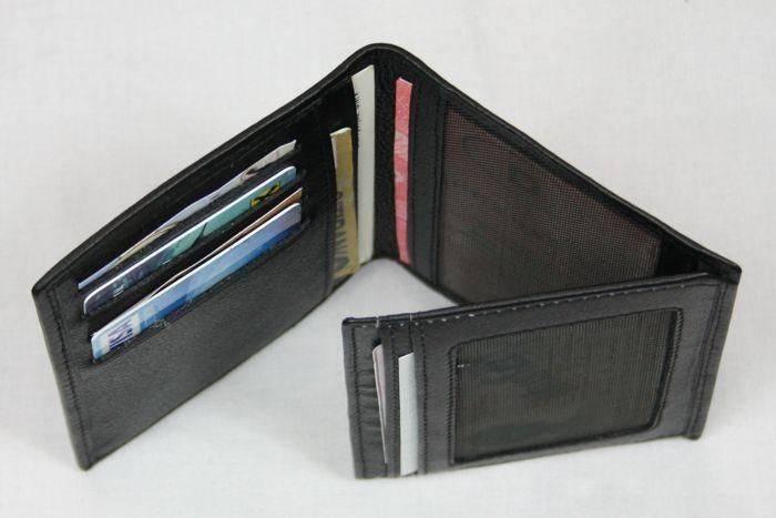 Černá pánská kožená peněženka takzvaná dolarovka Kód zboží 519-2908 Popis: pružina pro uchycení bankovek, 6 kapes na kreditní karty, 2 vnitřní kapsy 1…